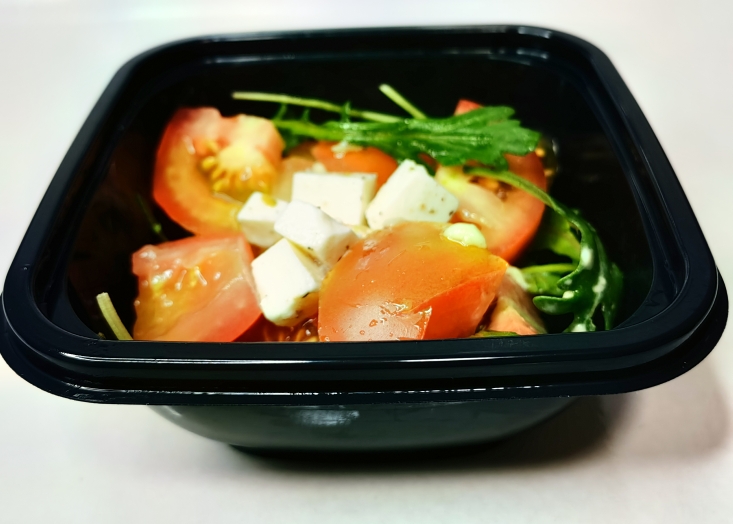 130 гсалат,огурец,томат,сыр моцарелла,зелень,салатная заправка