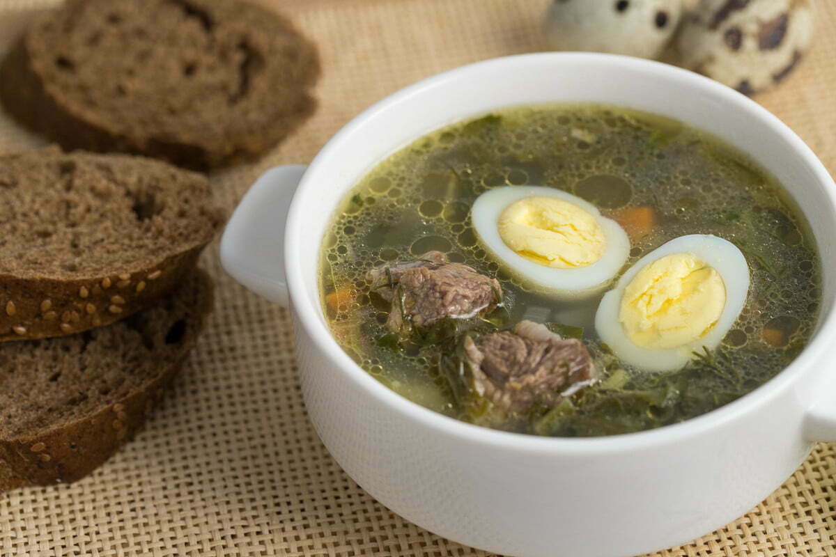 20/270свинина, картофель, щавель кон., шпинат, яйцо, морковь, лук, соль, сметана