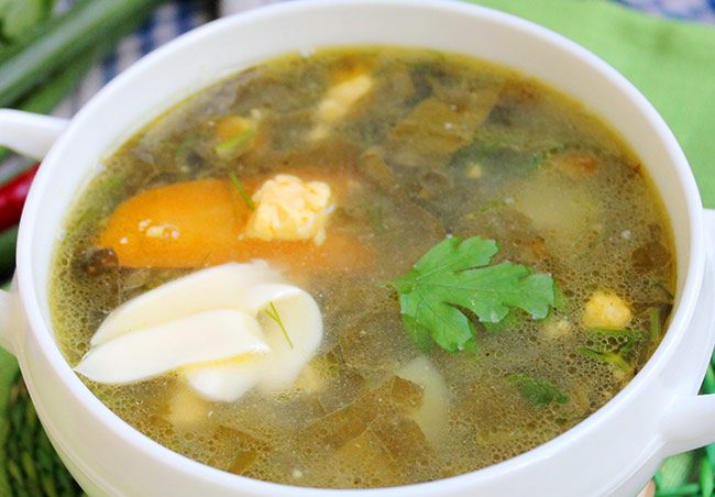 1/270щавель конс., шампиньоны, лук, морковь, картофель, соль,специи, сметана