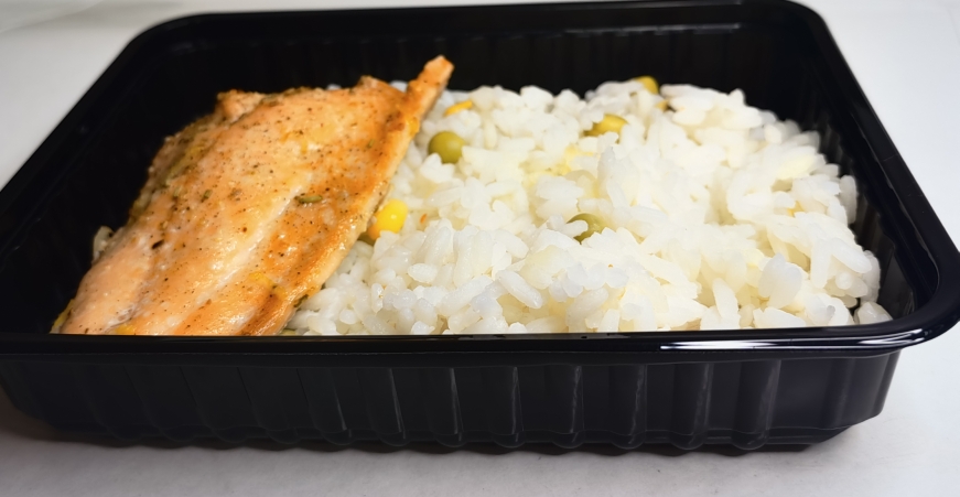 100/180филе горбуши,соль,специи,лимонный сок,рис, овощи