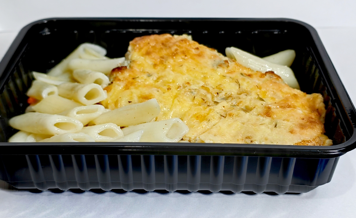100/180свинина филей, лук, майонез, сыр,соль, специи,макароны