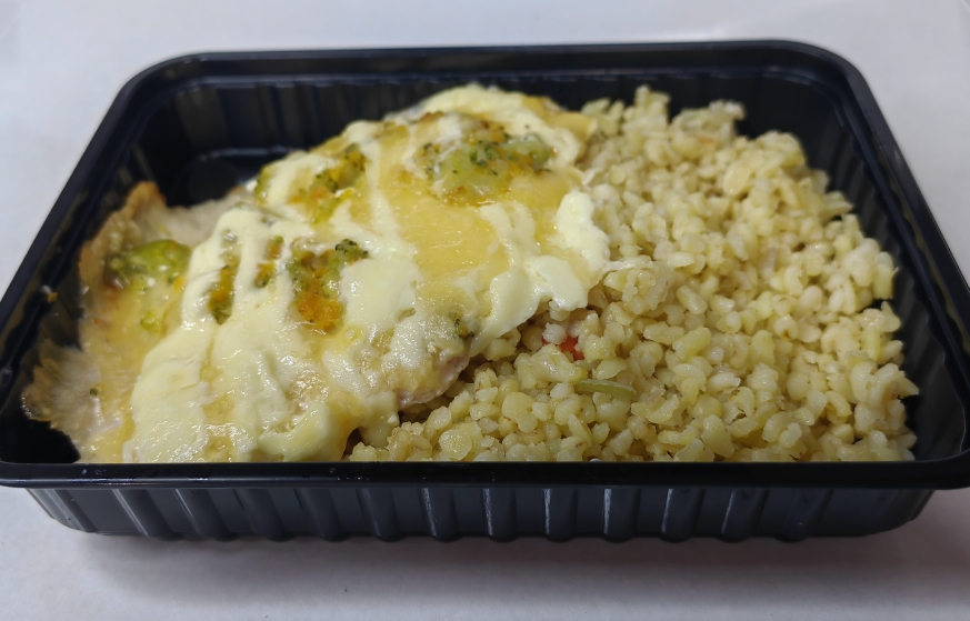 100/180филе куриное,брокколи,морковь,сыр, майонез,соль,специи,булгур