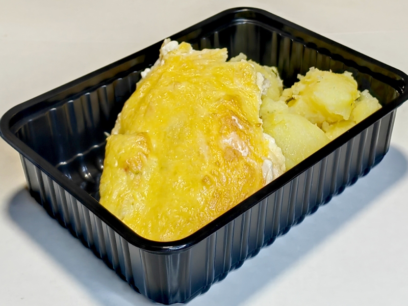 100/180филе сайды,сыр,яйцо,майонез, соль,специи, картофель