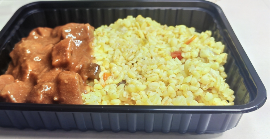 100/180говядина таз.,кисло-сладкий соус,соль,специи,булгур