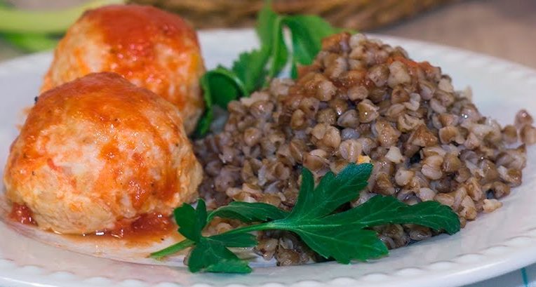 Колобок по-полесски с соусом с кашей гречневой