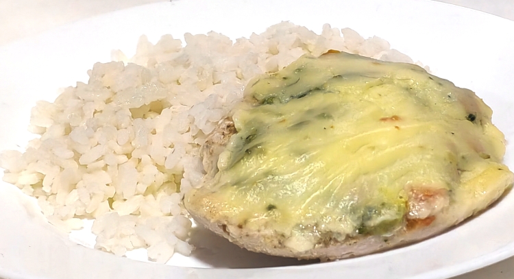 Грудка цыплёнка, фаршированная брокколи в сливочном соусе с запеченным картофелем