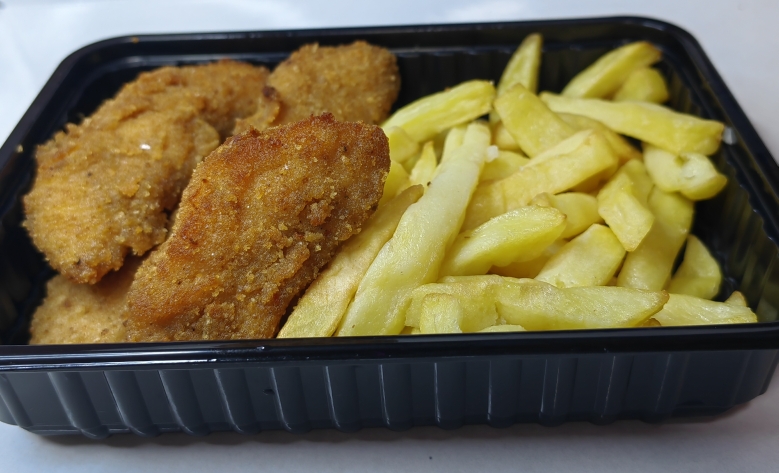 100/130/50филе ц/б, яйцо, мука, сухари панир., соль, перец ч/м, картофель фри,фирменный соус