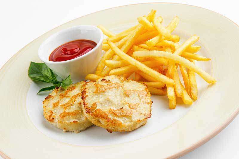 Котлета куриная в кунжуте с картофелем фри