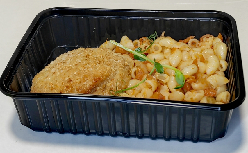 Биточек куриный / Макароны отварные с овощами