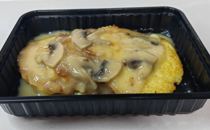 30/240фарш куриный,яйцо,сыр творожный,пан.сухари,соль,специи,соус Бешамель