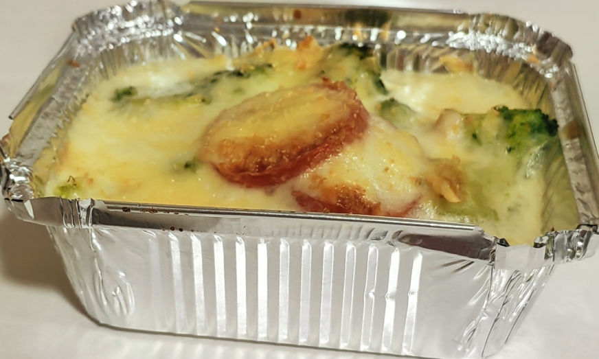 100/150/80/10куриное филе,брокколи зам.,томат,соль,специи,соус Бешамель,сыр