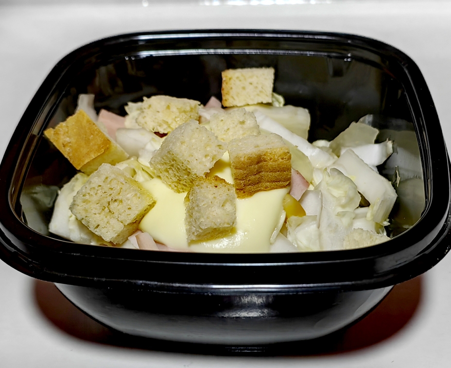 130 гкапуста пекинская, ветчина, кукуруза, сухарики, майонез